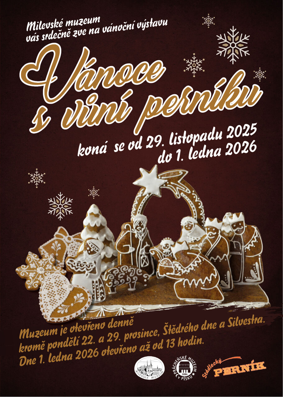 Letošní tradiční vánoční výstava Vánoce s vůní perníku zve návštěvníky do světa perníku v celé jeho kráse a rozmanitosti. Jak už název napovídá, hlavním tématem je perník – jeho historie, druhy i způsoby výroby. K vidění jsou zde staré dřevěné formy-kadluby, staré formy vykrajovací i tištěné barevné obrázky, kterými se zdobily perníky dříve. Výstava nabízí širokou přehlídku perníků, perníčků i svícnů od různých pekařek, z nichž každá přináší svůj osobitý styl. Návštěvníci tak mohou obdivovat jak tradiční podobu perníků, tak i současné moderní pojetí v pestrých barvách a neobvyklých tvarech. Velké soubory pro naši výstavu napekly místní pekařky Lucie Víšková a Iva Svobodová. Průmyslově vyráběné vánoční perníky dodala firma Stádlecký perník. Součástí výstavy jsou samozřejmě i betlémy – velký perníkový betlém od Lucie Víškové, menší od Venduly Čihákové. Výstavu doplňují i betlémy z jiných materiálů - nádherný betlém z taženého hutního skla či řezby z lipového dřeva. Tradičně nechybí ani výtvarné práce dětí ze Základní školy při Dětské psychiatrické nemocnici v Opařanech, kterých je letos opravdu velké množství. Nově je výstava obohacena také o výběr ze sbírky zvonečků sběratelky Kateřiny Studené.